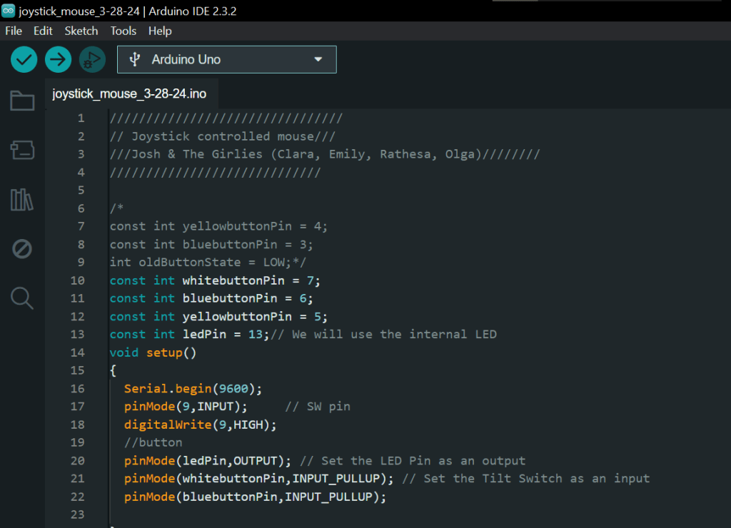 The coding aspect of the project was to have the joystick interact with the computer, such as movement of the joystick would also move the cursor with the co-responding direction. With the joystick being compatible with the Arduino, the coding process utilized both the ‘motherboard’ connection while the interactivity came from the python code and the ‘host computer’s’ device manager.